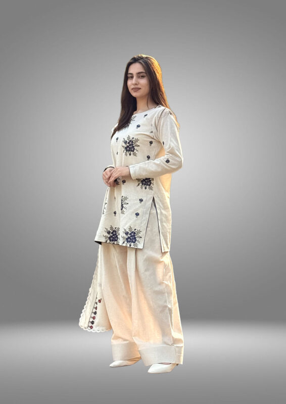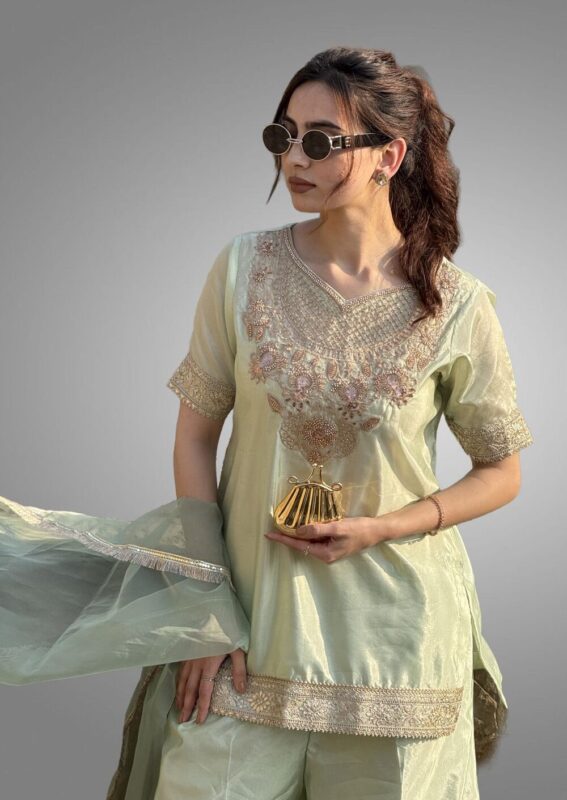 3-Piece Cotton Silk Shirt Sharara Palazzo Set